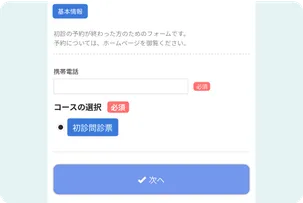 診療に必要な問診票の入力をしていただきます。